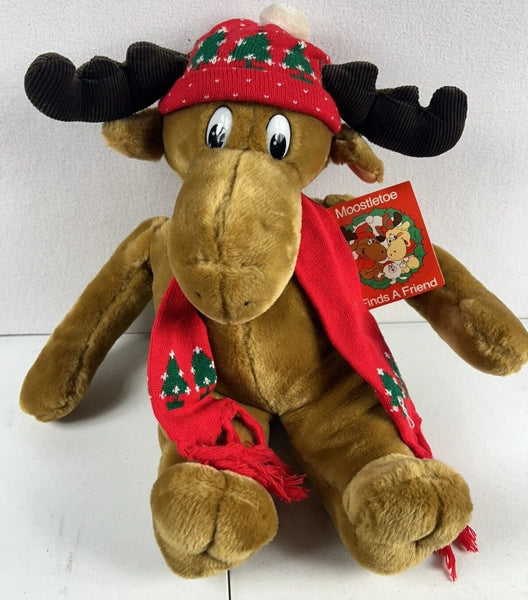 The Commonwealth Moostletoe 1987 Holiday Vintage Moose Plush Stuffed Animal is a large 21-inch toy from Taiwan featuring a classic moose design. This collectible stuffed animal is part of the character family of moose and is a nostalgic piece from the 1987 holiday season. With its high-quality brand and detailed craftsmanship, this vintage plush moose is sure to bring joy and charm to any collection or special someone's holiday gift. He’s adorable! Complete with original “Moostletoe Finds a Friend” storybook.