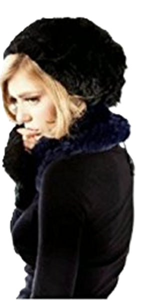 This beautiful set of matching moss colored open end mitts and cowl are made with luxurious Rex Rabbit fur.