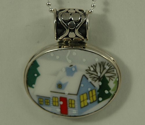 Hand Cut China - Sterling Silver Pendant - Holiday Winter Scene