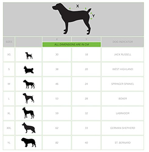 Sportz-Vibe is a lightweight portable massage blanket designed to help boost circulation in dogs. It can be used for high performance dogs as a warm up or recovery blanket to help ease soreness and stiffness after long work-outs or can be used on dogs of all ages that may be suffering from back problems or hip conditions. The Sportz-Vibe massage blanket for dogs helps to increase circulation to your dog's back and hips. The increase in blood flow makes tendons and ligaments more elastic and helps bring oxygen and nutrients to the area. Massage also helps to reduce inflammation by stimulating the lymphatic system to remove toxins. To determine sizing see photo of sizing chart. Sizing chart is in cm. NOTE: sizes may vary within 1".