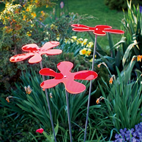 Thanks to the warm light and the soft swaying in the wind the Cazador will bring harmony and sunshine into your life - whether the sun shines or not. Even on a dull day the suncatcher will turn invisible light into visible light. Each glance at the garden or at the balcony will bring a smile on your face, for light is nourishment for the soul. Entire set Cazador-del-sol consisting of 3 Suncatcher-Disk (Acrylic glass, diameter 6'') with the swinging rod (fibrereinforced plastic, length: 3' 9'') and the little wedge for mounting the Suncatcher on the swinging rod.
