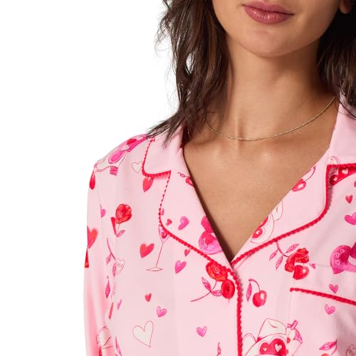 Our women’s long sleeve organic cotton pajamas in a dream for any Cowgirl or Western gal. They are cozy and comfortable. Hot Pink contrast trim at collar and cuffs, a notch collar, and chest pocket add style; and pull-on pants with an elastic waistband and pockets are perfect for lounging in or out of bed.