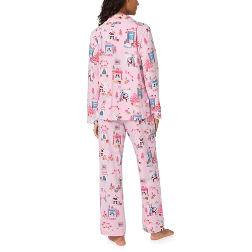 Generous fit, size down for a tailored look. Jingle all the way to bed in this joyful PJ set featuring a print full of Santa magic. The long-sleeve top and full-length pants are crafted from stretchy organic cotton jersey for all-night comfort. With contrast piping and a notched collar, it delivers a festive twist on a bedtime classic.