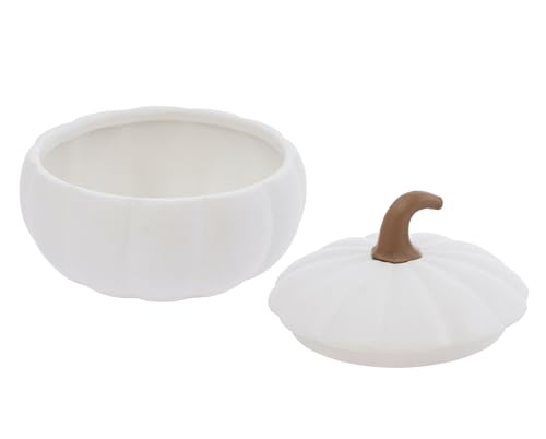 Celebrate the fall season and the bounty of the harvest with this ceramic lidded serveware/container in the shape of a pumpkin. White pumpkin measures 6.5 x 5.5 inches, it makes a wonderful addition to your fall or Thanksgiving dining table or use as home decor on the mantel, shelf or side tabletop. Boston International is a woman-owned, design-driven company that has been a leader in the home decor and gift industry since 1986. We invite you to celebrate the home with Boston International!