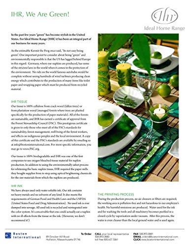 20-Count napkins measure 5 x 5". They're ideal when enjoying drinks, just place under glasses and cups to protect tabletops. Create dynamic tables capes and stunning place settings by pairing patterned napkins with plates in coordinating solids. Plates and napkins are offered in multiple sizes, allowing you to mix and match, layer and customize. Ideal home range offers a sustainable option for conscientious consumers, producing 100% biodegradable napkins using the safest tissues, inks and printing processes.