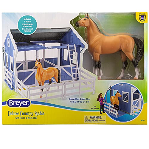 Deluxe Country Stable with Wash Stall and Freedom Series Buckskin Quarter Horse