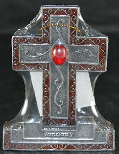 Encore - Free Standing Silver Cross with Gemstone - Red - January