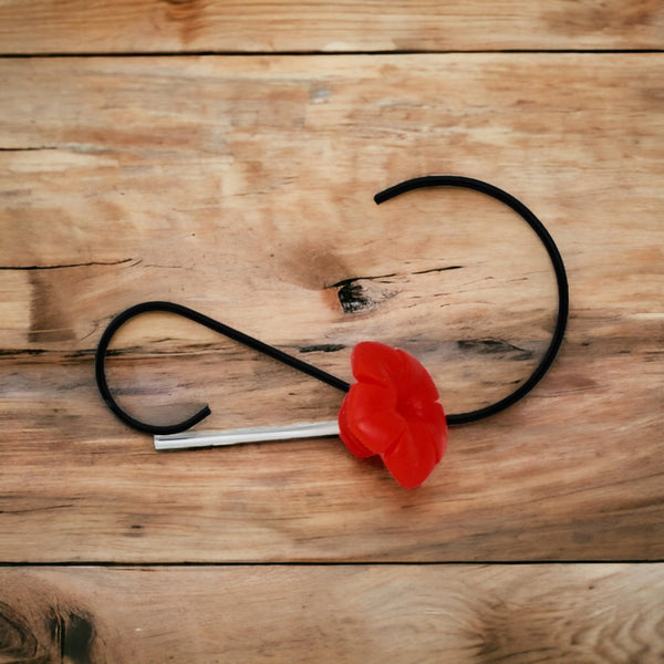 This hand-blown glass hummingbird feeder holds 8oz of nectar. Blossom ports are made of rubber with a plastic tube insert and can be easily removed for cleaning. Each feeder comes with a s-hook to conveniently hang the feeder.
