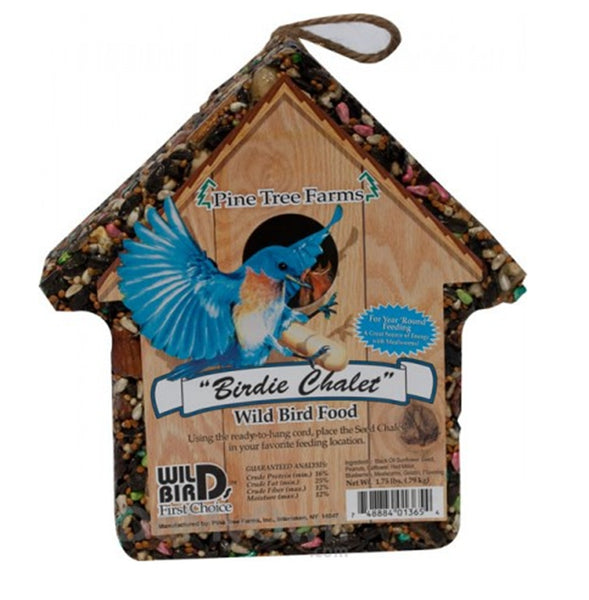 Pine Tree Farms 1365 Edible Birdie Chalet, 1.75 Pounds: The Pine Tree Farms 1365 Edible Birdie Chalet is a delightful and edible birdhouse designed to provide both shelter and sustenance for wild birds. The 1.75-pound chalet offers a mix of seeds, providing a hearty meal for various feathered visitors. Hang it in your garden, and enjoy the sight of birds seeking refuge and food in this charming edible chalet.