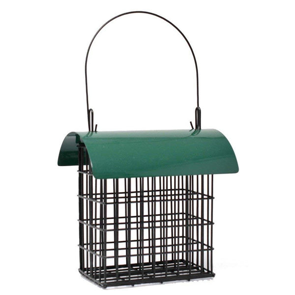 The Deluxe Double Suet Cage with Hunter Green Roof holds two standard size suet or seed cage. Rooftop helps to keep suet protected from weather. Great for feeding clingers year-round. Easy to clean and disinfect. Additional Product Details Local Retailer Find a local retailer to purchase this product. UPC # 645194778436 Manufacturer Songbird Essentials Model / Item Number SE106 Case Quantity 6 (case quantity not required) Country of Origin INDIA Weight 0.70 lbs Dimensions 4.75 (D) x 6.00 (W) x 12.00 (H) inches Dimensions (Metric) 120.65 (D) x 152.4 (W) x 304.8 (H) millimeters Categories Suet and Seed Log and Cake Feeders Tags Green, Clingers