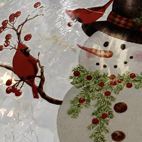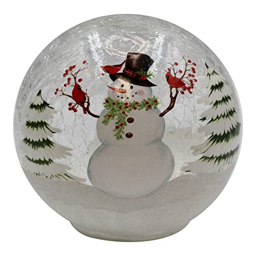 Gift Essentials Snowman Holiday Glass Light Orb is a Great Start or Addition to Any Holiday Decoration Display. This Christmas Globe Measures 6 Inches and LED Lights Light the Globe from the Inside. A Convenient Switch on the Bottom of this Lamp Glass Globe Turns it On and Off. The Crackle Glass Exterior of this Sphere Lamp Features a Lovely Woodland Snowman with a Few Cardinal Friends Resting on his Branch Arms. The Small Size and Cute Design of this Desk Globe Light make it Perfect as Christmas Light Up Decor, or a Great Addition to your Christmas Table Decor. This Globe with Night Light Makes a Great and Thoughtful Gift for your Snowman-Loving Friends Just in Time for the Holidays! Gift Essentials Christmas Snowman Crackle Glass LED Globe is a Decoration that can be Enjoyed by Family and Friends for Years to Come.