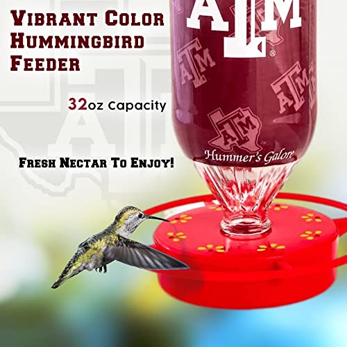 Hummer's Galore - 32 oz. Glass Hummingbird Feeder w/ UV Resistant Plastic Wrap - Texas A&M