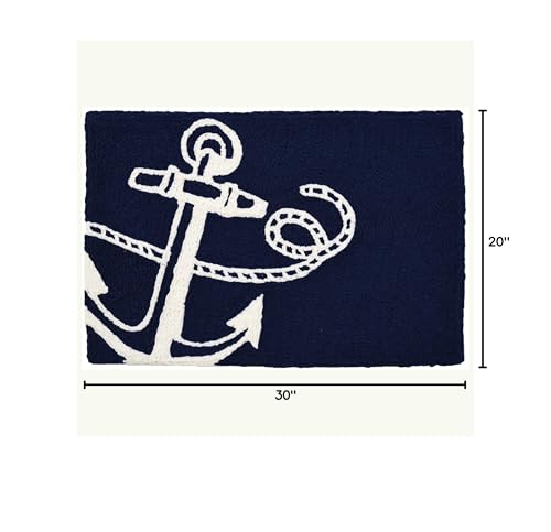 Whether you're decorating your home or vacation rental, Jellybean's accent rugs are the perfect choice for a quality accent. These rugs are made from recycled materials and are machine washable for durable lifestyles. Choose from nautical themed Navy Anchor or its companion, Navy Compass, classic designs of navy blue background with white emblems.