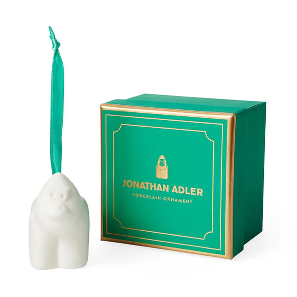 Deck your halls with our annual assortment of wildly collectible Menagerie ornaments. Handcrafted from high fire porcelain in a smooth matte finish with a satin ribbon tie, each piece pops against your evergreen trees and wreaths. Packaged in a fetching and festive box, perfect for gifting (and storing). Collect them all.