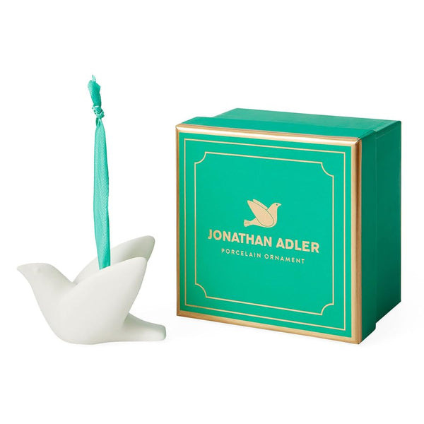 Peace & Love: Deck your halls with our annual assortment of wildly collectible Menagerie ornaments. Handcrafted from high fire porcelain in a smooth matte finish with a satin ribbon tie, each piece pops against your evergreen trees and wreaths. Packaged in a fetching and festive box, perfect for gifting (and storing). Collect them all. Each Dove Ornament starts its journey in our Soho pottery studio where Jonathan and his team hand-sculpt the original model in clay. The prototype is then sent to our workshop where skilled artisans produce each piece in high-fired unglazed porcelain.