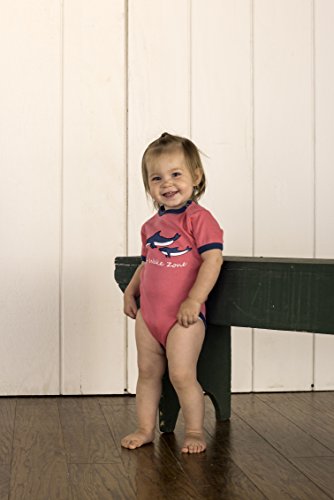 Made from 100% ribbed cotton, creepers fit snugly with a comfortable stretch and conveniently snap at the crotch and shoulder! This cutie is a bright pink with a blue trim and 2 blue dolphins on the front.