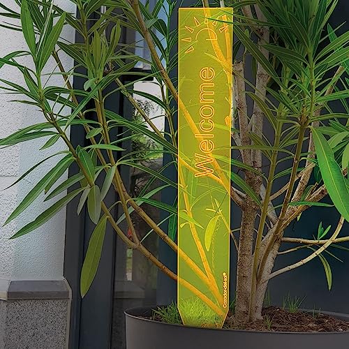 Decorate your entrance or your backyard with an inspirational Engraving and put a smile on your visitors' faces. A decorative product from the home of Cazador-del-sol's Suncatchers line of glowing products. We are glad to introduce our new line of inspirational glowing signs: Say Welcome to your guests, show Love to others, always aim for Happiness and take a moment for Relaxation. And we always look for Sunshine, to brighten our days.